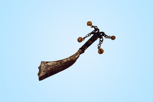 Made in Mindanao, Philippines by the T’boli, this knife is intended to be used by women and is made of brass and steel.