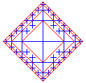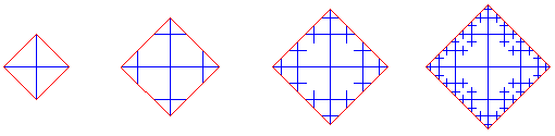 The following figure shows the areas of the rhomuses for the first four iterations that need to be calculated. To calculate the area of a rhombus you can treat it as two triangles.