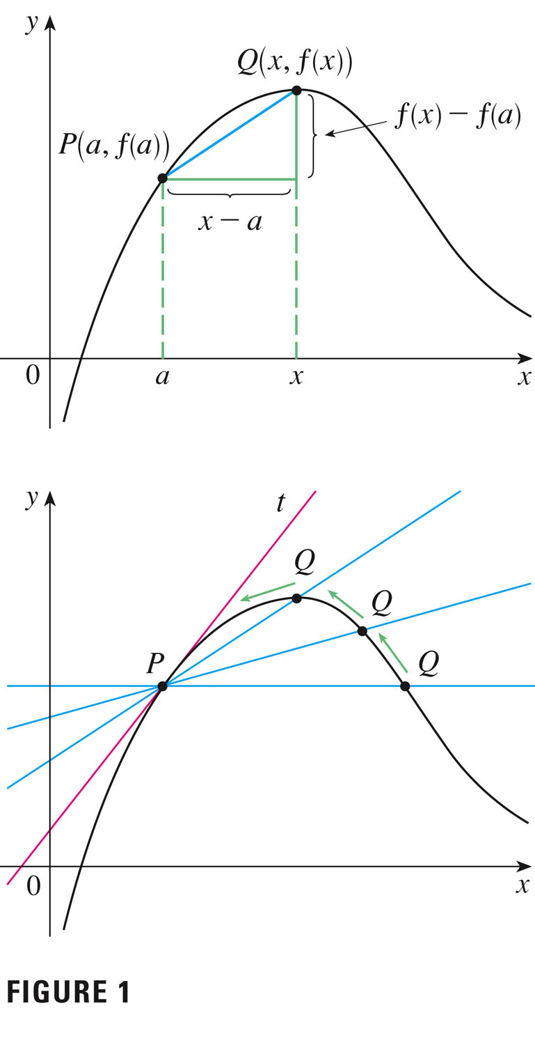 The slope m of the tangent line at P(a,f(a)) is approximated by the slope of the blue line segment, In the limit, this is which I call the most important definition in calculus. |