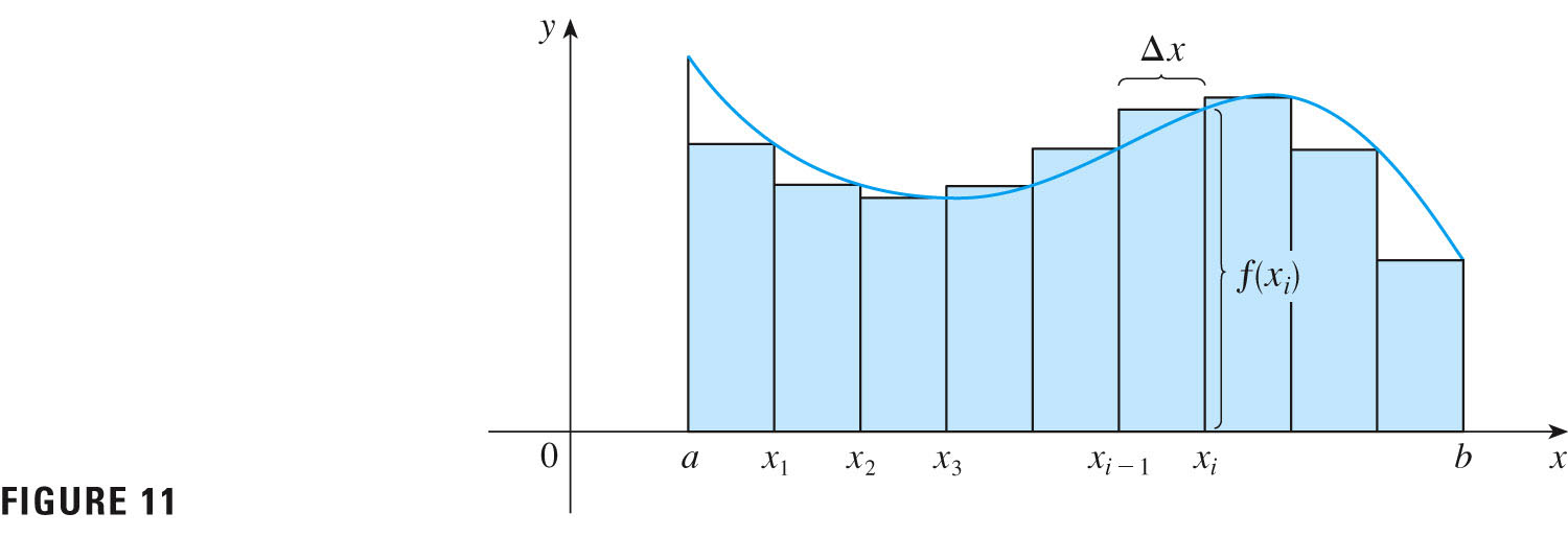 and then we think of $dA$ as small rectangles: $dA=f(x)dx$ as a rectangle of height $f(x)$ and width $dx$, as $x$ varies from $a$ to $b$: