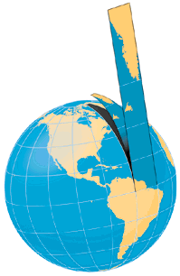 | A really fun (okay, just fun!) map projections page. The map at right is a projection of the world onto a 14-faceted "GlobeMap". Another one, more business than fun. I got both of these from this generally useful site. |