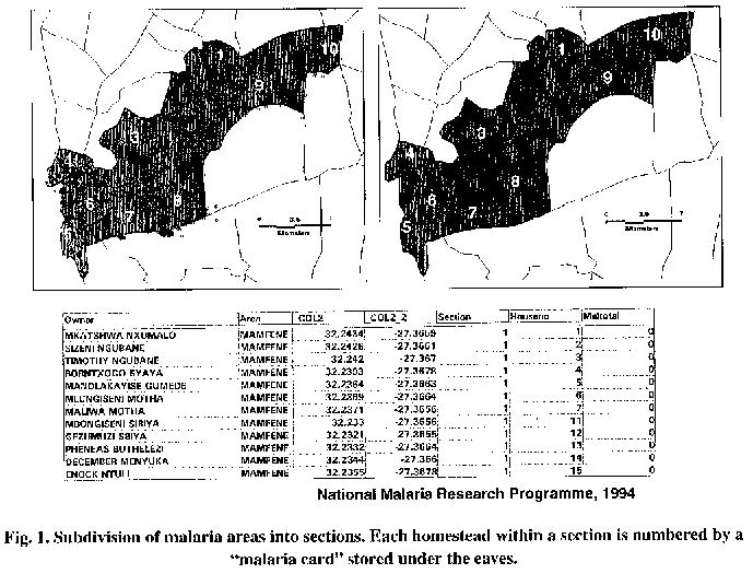 The malaria information system was established using the existing health infrastructure in a rural region of South Africa. This region has a high incidence of disease, a poor socioeconomic infrastructure, and one of the lowest per capita incomes in the country. It is also important to note that people do not live in villages, but in patriarchal homesteads usually separated by 50 to 500 m, depending on the terrain. This situation poses some unique issues related to malaria control.