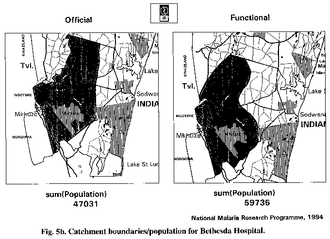By overlaying the MIS population data with catchment areas of local hospitals, it was also possible to get a measure of the actual population that the hospital was serving as opposed to what it was officially supposed to serve (Fig. 5b). Such data, when combined with population distribution/density, are useful in planning projected resource needs and the distribution/requirement for satellite clinic facilities.