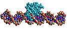 Following electrophoresis, the separated DNAs are denatured while still in the agarose gel by soaking the gel in a basic solution. Following neutralization of the basic solution, the single strand DNA molecules are transferred to the surface of a nylon membrane by blotting. This denaturation/blotting procedure is known as a "Southern blot" after the inventor, Edwin Southern. Just as the blotting of wet ink on a dry paper transfers a replica of the image to the paper, the blotting of DNA to a nylon membrane preserves the spatial arrangement of the DNA fragments that existed after electrophoresis.