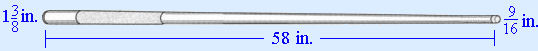 We'll start by considering the center of mass of a simple object, a pool cue — basically, a tapered wooden rod. A typical pool cue is `58` inches long with circular cross sections that taper from a diameter of `1 3text[/]8` inches at the butt to `9text[/]16` inches at the tip (see Figure 1).