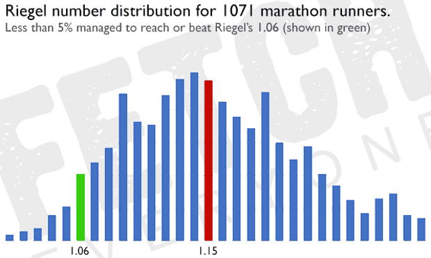 This on-line article begins by making the point that if you double your distance, then your time does not double -- but goes up by \[ 2^b \] So, if $d_2$ is twice $d_1$, then \[ T_2=T_1(\frac{d_2}{d_1})^{1.06}=T_1(2)^{1.06} \]