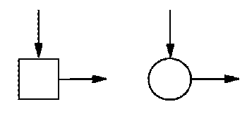 A compartment is an amount of some material that is homogeneous. Examples might be, the amount of a drug in the blood stream of a person, or the number of infected individuals in an epidemic of a specific disease in a uniform population. A compartment is usually represented diagramatically by a square or a circle, with arrows pointing towards and away from the compartment, as shown in Figure 1.