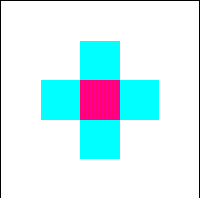 | The center square has four neighbors, in the north/south and east/west directions. | The center square has four neighbors, along the diagonals. | The center square has eight neighbors: every square which touches the center square is a neighbor. |