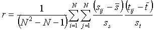 are average space and time distances and ss and st are standard deviations of the space and time distances. r is a measure of matrix correlation with range –1<r<1.